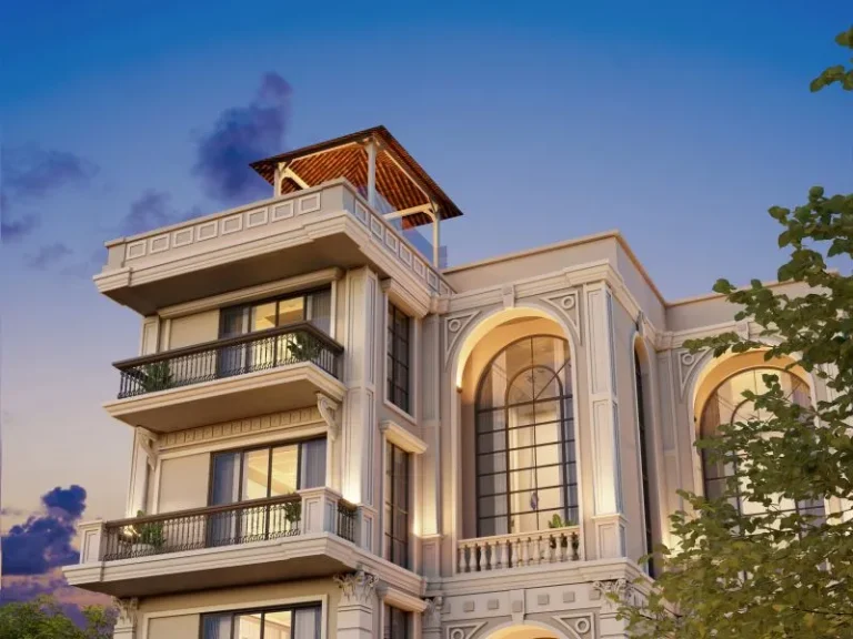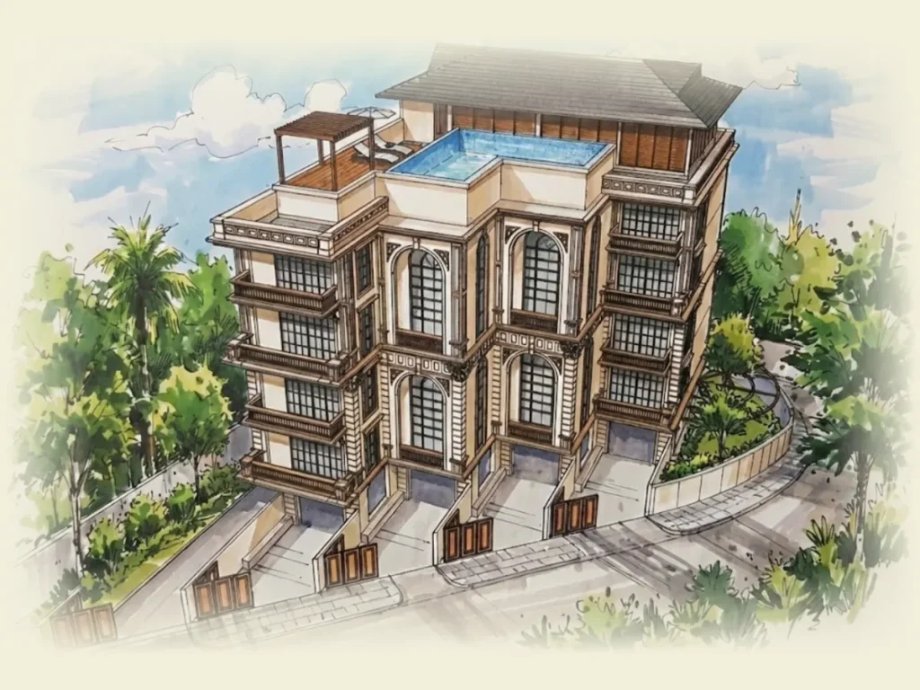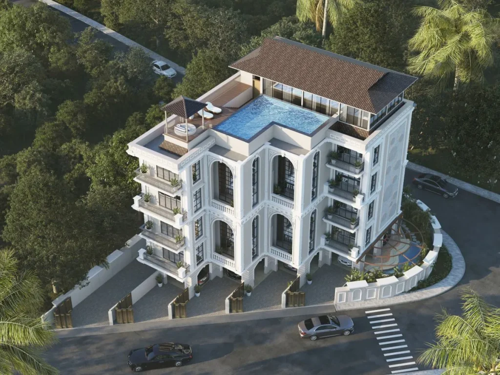 The project blends classical architectural character with modern planning to create residences that feel both stately and deeply livable. Every home offers grand living spaces with four bedrooms, private study areas, walk-in closets, individual servants’ quarters, and expansive arched openings oriented toward ocean views.
